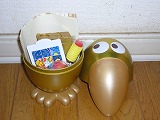 ごーおん・・・面白いんだけど、腐な萌えはいま一歩ってな感じです。日記ばかりぽつぽつ更新してて申し訳ない。しかも最近はDM分かんない人には(きっと大多数)どーでもいい内容で・・・。一応生存報告ってことでひとつ。(汗) そんな折(どんな)我が家にあるモノが届きました。 コレ↓です! ![]() なんだか分かります?そう!アノ「金なら一枚銀なら五枚♪」でおなじみの「キョロ缶」です!しかも今40周年記念だとかで金色です。 苦節○年・・・集めたんですよ、銀のくちばし五枚。銀ってたまーに出るんですけど五枚ためる前に捨てちゃったりなくしちゃったりするんですよねー。よくためました我ながら。 ちなみに中身はこんな感じ↓ ![]() ミニミニなおもちゃが五種類ぐらい入ってました。 「いや〜ほんとにあるんだな〜」というのが手にしたときの率直な感想。(笑) しかしながら幼き頃から聞いたことはあれど目にしたことはないモノとのご対面は素直に嬉しいですv その内金のくちばしにもお目にかかってみたいなぁ。(←金のくちばしには当たったことがない)金なら集めなくて良いしね!(笑) |