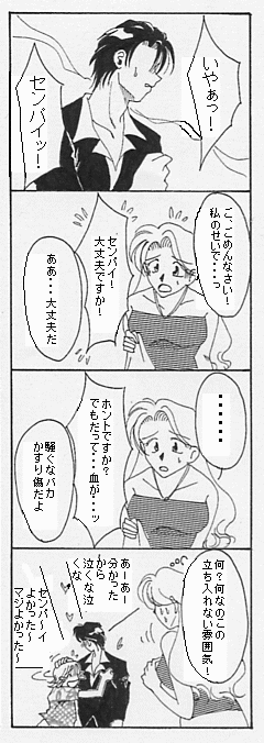 実はコレが一番最初に描いたモノだったり。 改めてビデオを見直してみると 只野さんの傷は もちょっと下の手首の上辺りだったんですね。 只野が撃たれて逆上する森脇に悦vvv その後泣きじゃくる森脇の頭を さりげなくナデナデする只野にも悦vvv